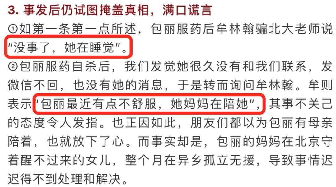 资料来源:南方周末:《不寒而栗的爱情:北大自杀女生的聊天记录》公众号“凯旋十二”:《我是北大自杀女生包丽的朋友,真相远比你知道的更可怕》“新京报”视频采访《和陌生人说话》节目