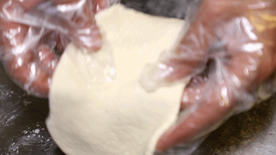 赤将军三角粿经过2年研究改进,光是这粿皮的制作就非同一般了!区别于传统三角粿注浆制粿的方式,赤将军创新采用揉面制粿的工艺,除了使粿皮更薄,出品更标准外,还大大提高了三角粿的制作效率,也让制作过程更加卫生哦!
