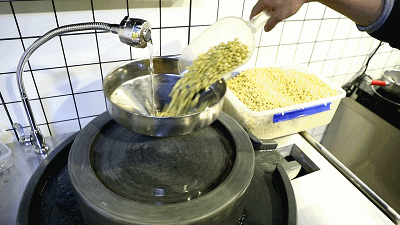 赤将军家精选饱满黄豆,传承古法石磨研磨,让黄豆的营养全部融入豆浆里,奶白色的生豆浆缓慢地从石磨缝中流出,光是看着这磨豆过程就让人无比舒适!