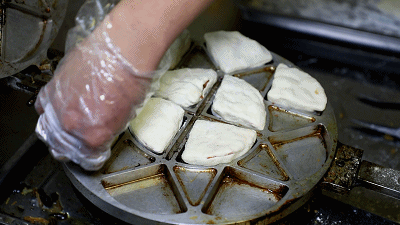 耐心等待5-8分钟后,新鲜美味的三角粿就热乎乎出炉啦!