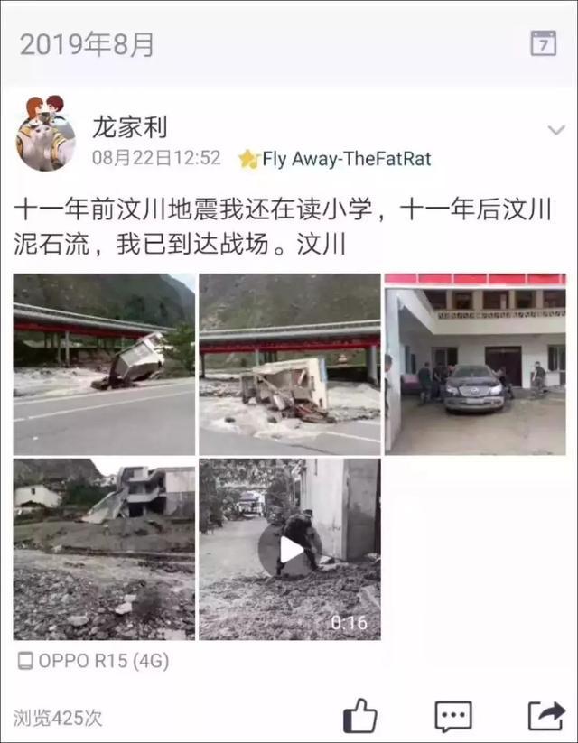 “十一年前汶川地震我还在读小学,十一年后汶川泥石流,我已到达战场。”