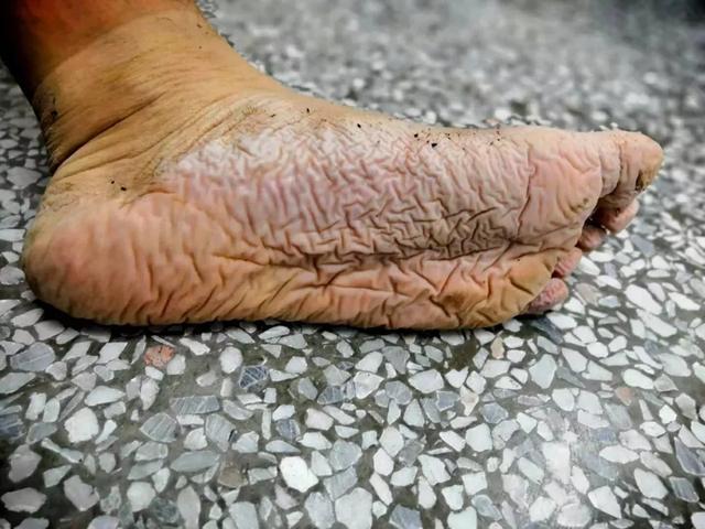发白、褶皱,这双脚已经在水里断断续续泡了4天,而像这样的脚可不止一双。官兵们连续多日奔走在抗洪一线。从支队长到列兵,浮肿变形的脚,是他们的“标配”。