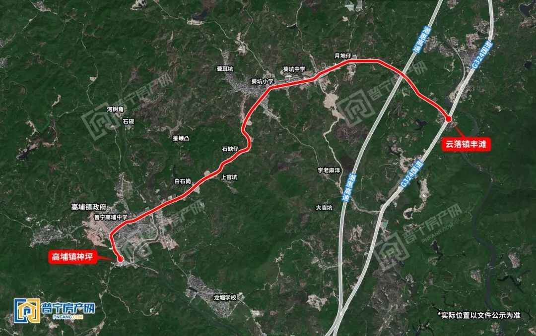该项目起点位于云落镇丰滩,终点止于高埔镇神坪,全长8.757公里,工程总投资8092万元。至目前,市财政每公里补助200万的补助资金已拨付到位,工程已完成投资5800多万元,基本按设计完成了高埔镇辖区路面硬底化及相关配套设施建设;云落段(高埔镇葵坑村至云落镇崩坎村国道324线交界处)已完成征地拆迁、国防光缆迁移、路基平整等工作,目前正在抓紧实施路面硬底化及道路绿化等工程,总工程预计于2019年8月份全面完成建设。