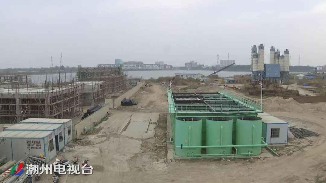在施工现场, 一个 一体化污水处理设施已启动运行,承担起了仙洲岛生活污水处理的临时任务,在工程建成前发挥着应急备用作用。 它的日处理污水能力可达到1000吨,处理效果达到污水处理厂的处理水平。 为了使整个项目工程的建设,整个沙洲岛的污水不排入韩江,经专家研究确定,临时建了这个污水一体化的处理设施,目前把整个沙洲岛的污水引入到这边处理后,泵送到潮州的污水管网,到目前这个污水处理后的水质各项指标都达到国家“中水”的水平。