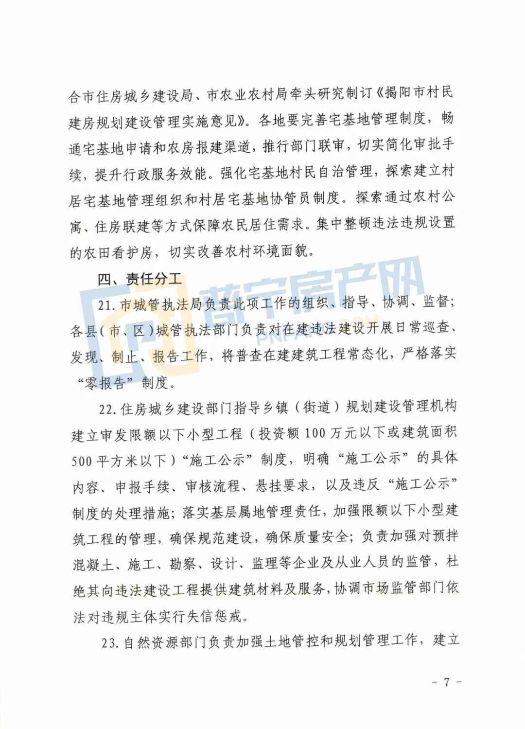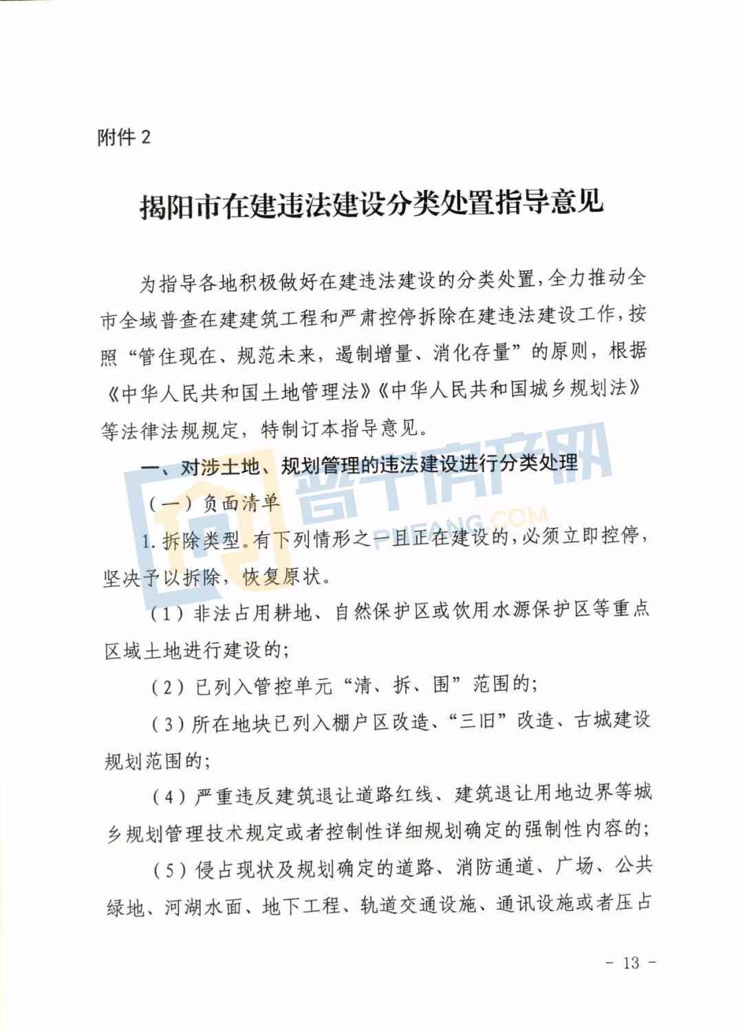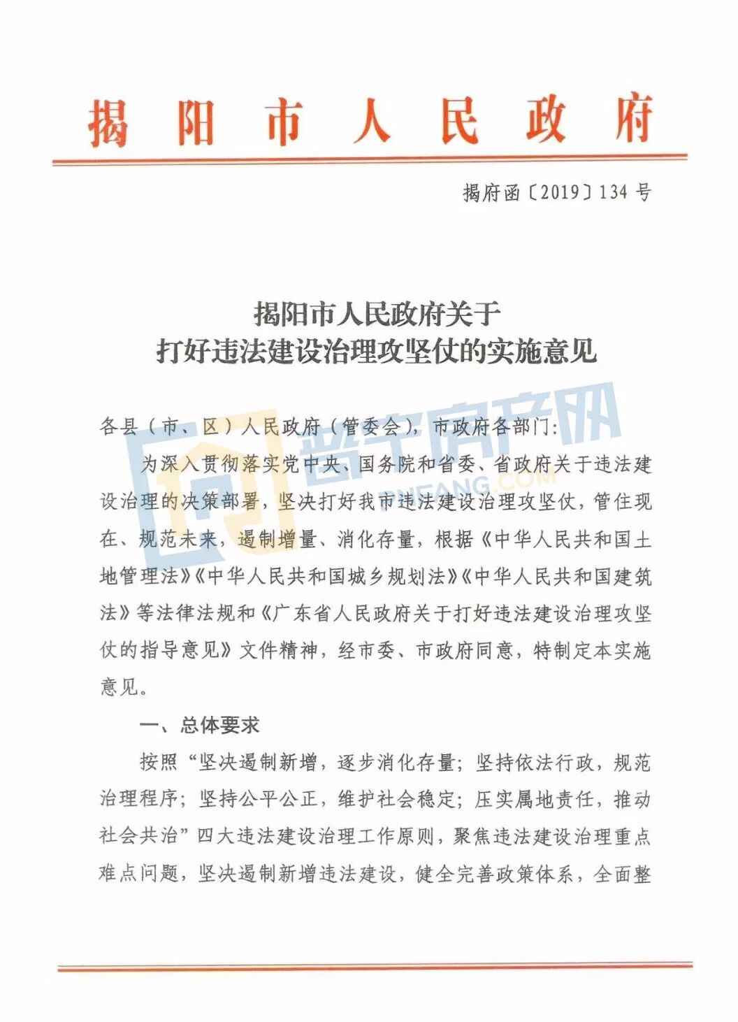 《揭阳市人民政府关于打好违法建设治理攻坚仗的实施意见》摘选