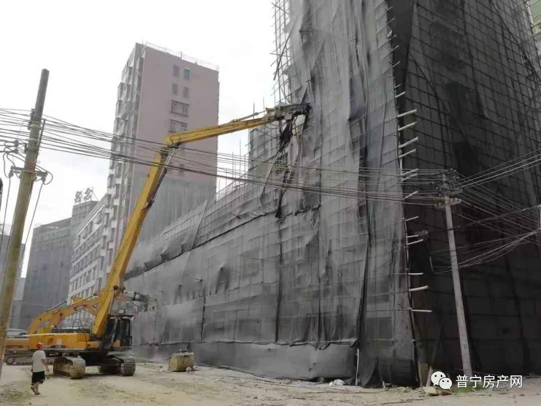 3、拆!普宁市区一自建楼违规建设,超7层部分被强拆!