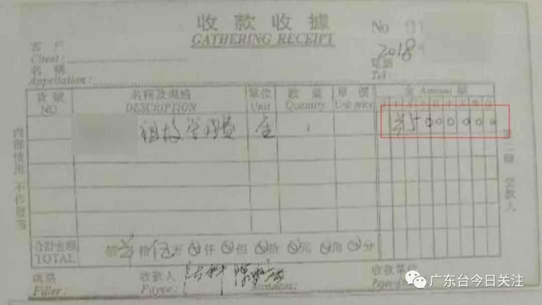 虽然都是现金交易,不过并不是完全没有证据。有举报者提供了两张外村人缴交祖坟管理费的收据,其中一张是5万元,另一张是8万元,签收的都是村干部。