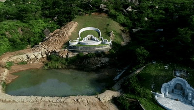在汕尾陆丰的东竹村松竹寮村民小组,暗访组看到多个山头上矗立着一座座崭新的大型坟墓。其中最为豪华的坟,前有水池、侧有小溪、四周有草坪。