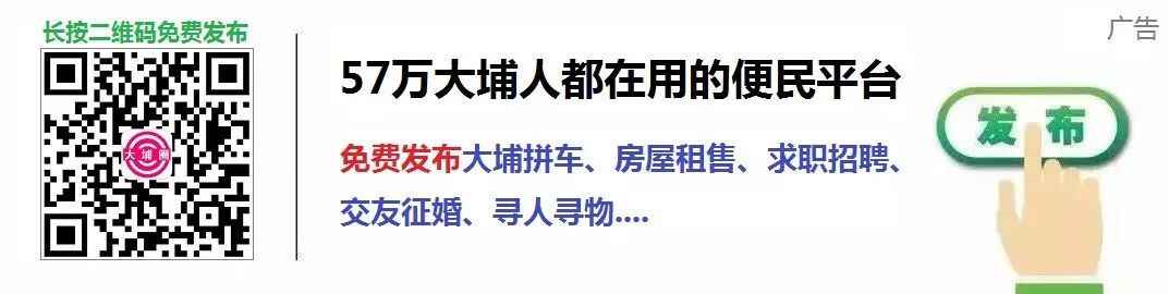 【推荐】点左下"阅读原文"免费发布大埔拼车、求职招聘、房屋租售、寻人寻物等便民信息...