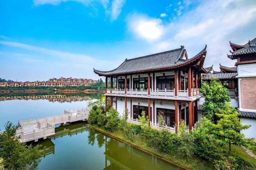 腾龙阁游客餐厅环绕着我们美丽的凤栖湖