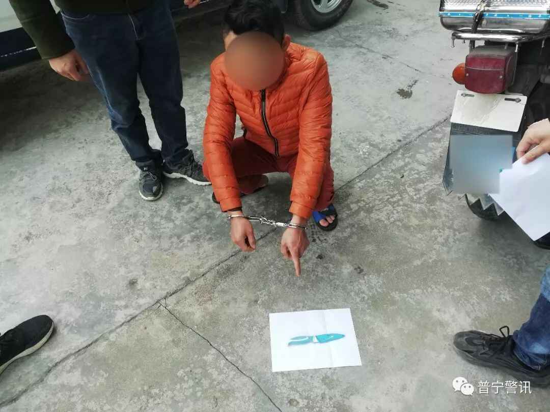 1月9日23时许,下架山派出所接一女事主报称,其从流沙泗竹埔村回家途经下架山镇虎岗村往和寮村路口被一尾随戴口罩男子开一辆摩托车拦停,后该男子持一把水果刀抢去其随身带在身上的一个红色挂包后逃离。接报后,该所领导高度重视,立即抽调警力组成专班对案件进行侦查,通过扩大调查范围,摸清犯罪嫌疑人的作案路线,寻找案件的突破口。
