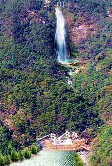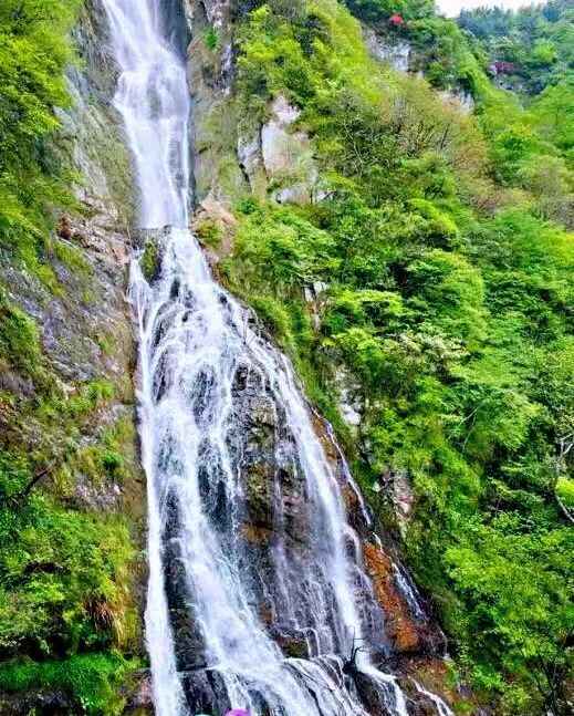 来宝山湖,必到悬崖瀑布打卡。100米的高空瀑布飞流直下,宛如一匹银色素洁的白练,恢宏壮观。