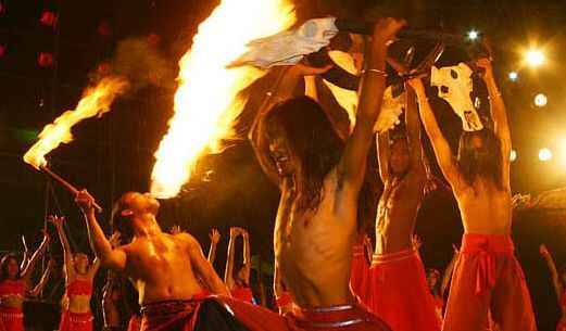 还有精彩的原始部落表演,仿佛穿越到亿万年前的原始野人时代,魔幻又震撼。