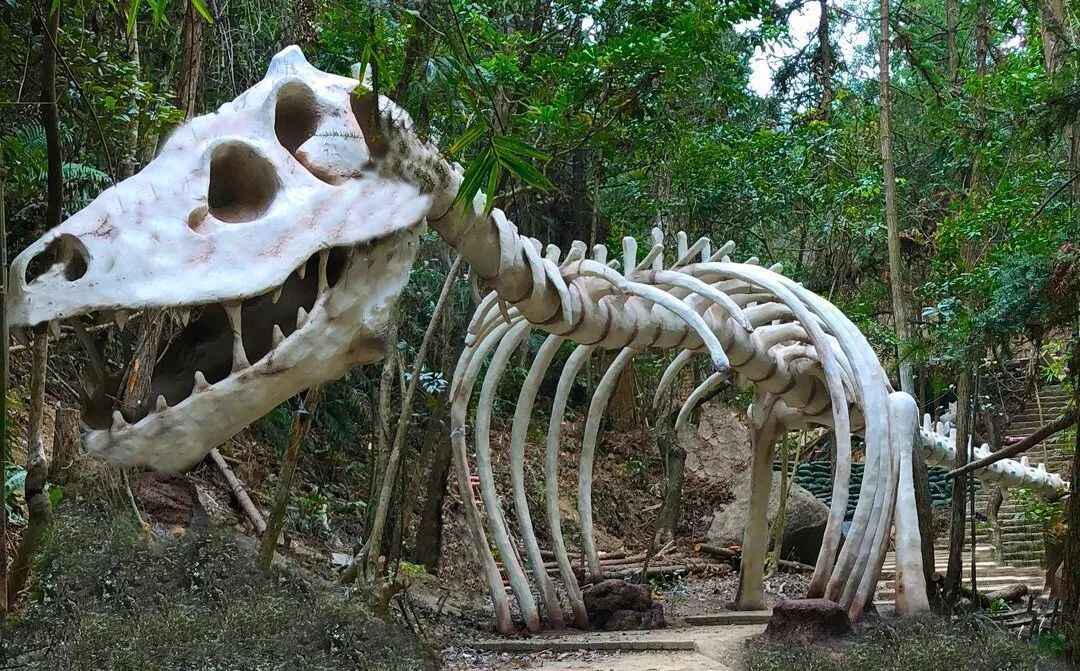 进入野人谷,映入眼帘的是一座宏伟壮观的恐龙骨架,亲身感受亿万年前世界霸主的气魄。
