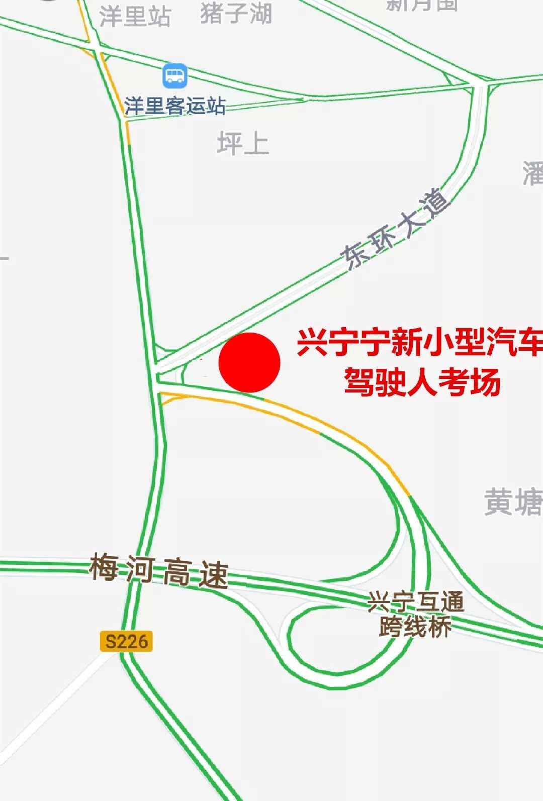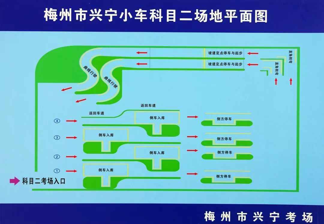 该考场位于兴宁市宁新街道办事处洋里村(梅河高速兴宁东出口东侧)。科目二考场有7辆东风雪铁龙牌C1考试车,3辆东风雪铁龙牌C2考试车,4个倒车入库、侧方停车项目,2个直角转弯、坡道停车定点和起步、曲线行驶项目;科目三考场有6辆大众牌C1考试车,2辆大众牌C2考试车;考场每天可以接待200名左右的考生参加考试。................................................................................................................... |