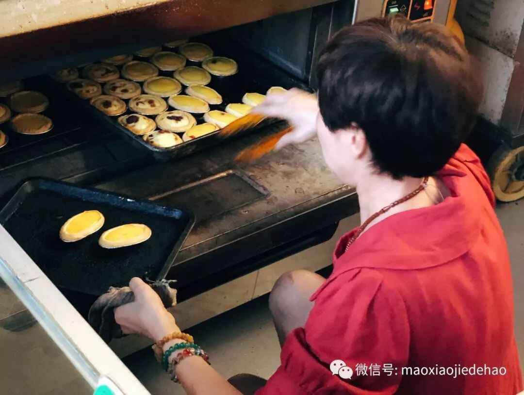穿着小红裙的阿姨满满的少女气质,对待每一颗蛋挞都充满了感情。