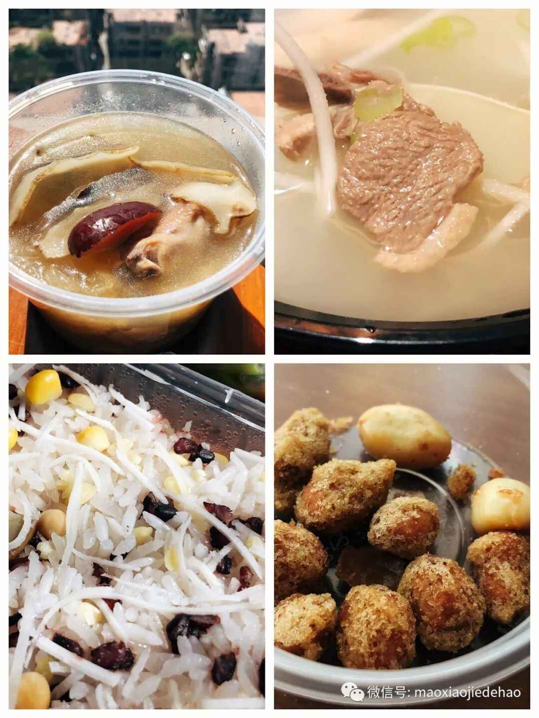 杂粮饭,里面是玉米粒、鹰嘴豆、紫米,白色一丝丝的你们猜什么?椰肉丝!