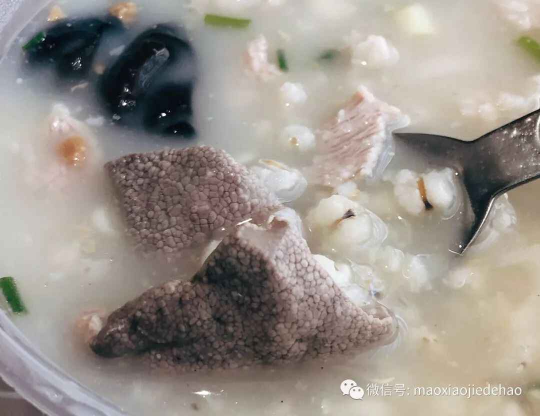 薄薄的肉片、猪肝、还有木耳、鲜虾,还有油炸过的蒜片,一起熬煮,清淡却满是鲜味。