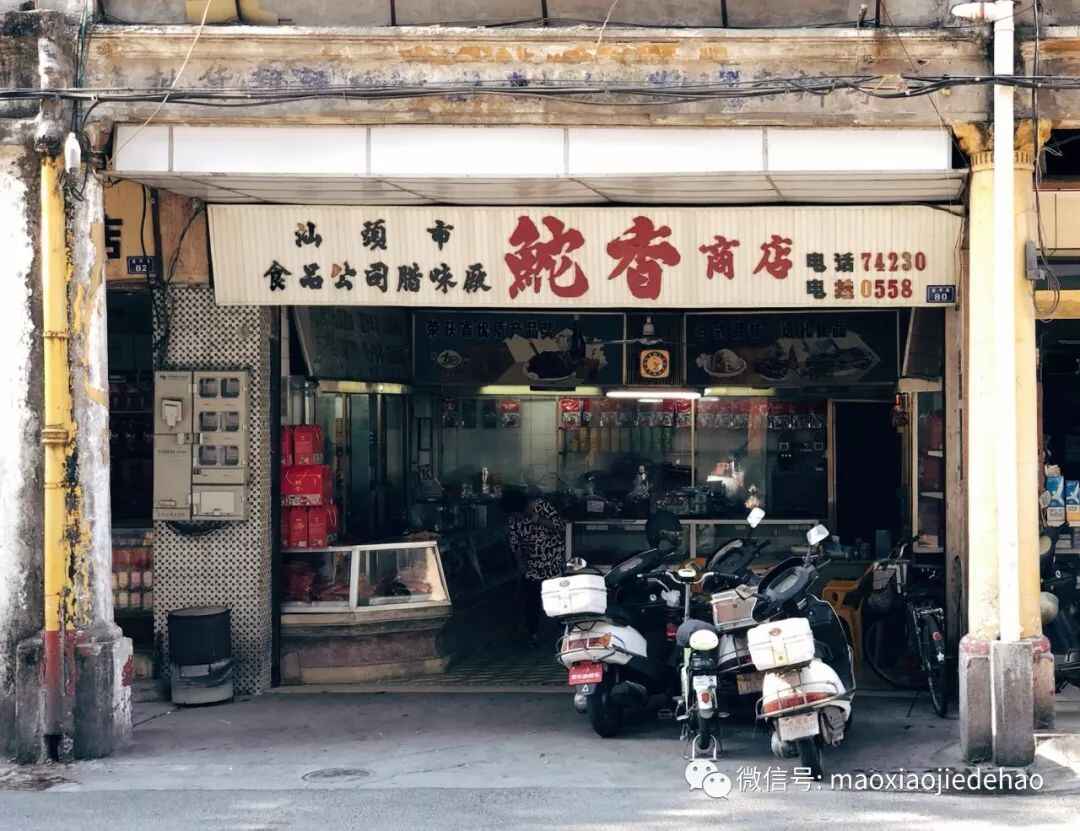 吃了一家,再暴走一段路去吃另外的店,感觉都不会胖。 雷记、陈南隆饼家,地址:安平路75号02-03号,04号 两个老字号连在一起,一边是现做的点心,一边则是糕点。 雷记有传统的油粿,看起来像油炸巨型饺子,但吃起来外脆里嫩,而且不粘牙,里面的馅料有芋头香菇肉末,只要3元一只。 如果想了解汕头的传统糕点,可以来陈南隆一探究竟,包装朴素简单,让我想起了小时候逛食品商店的情景,很是怀旧。 买了绿豆饼、沙琪玛、花生酥带回去,花生酥很浓郁,姜薯味沙琪玛味道有些特别。 有着5、60年历史的国营腊味厂门店。