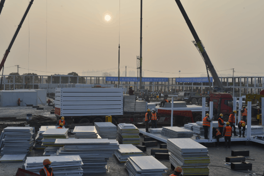 截至1月29日下午16时,现场场地平整和回填全部完成,板房基础混凝土浇筑完成约90%,已经完成300多个箱式板房骨架安装,同时场外正在抓紧板房拼装,完成约400个,吊至现场可直接安装。水电暖通、机电设备等材料全面到位,且同步开始作业。