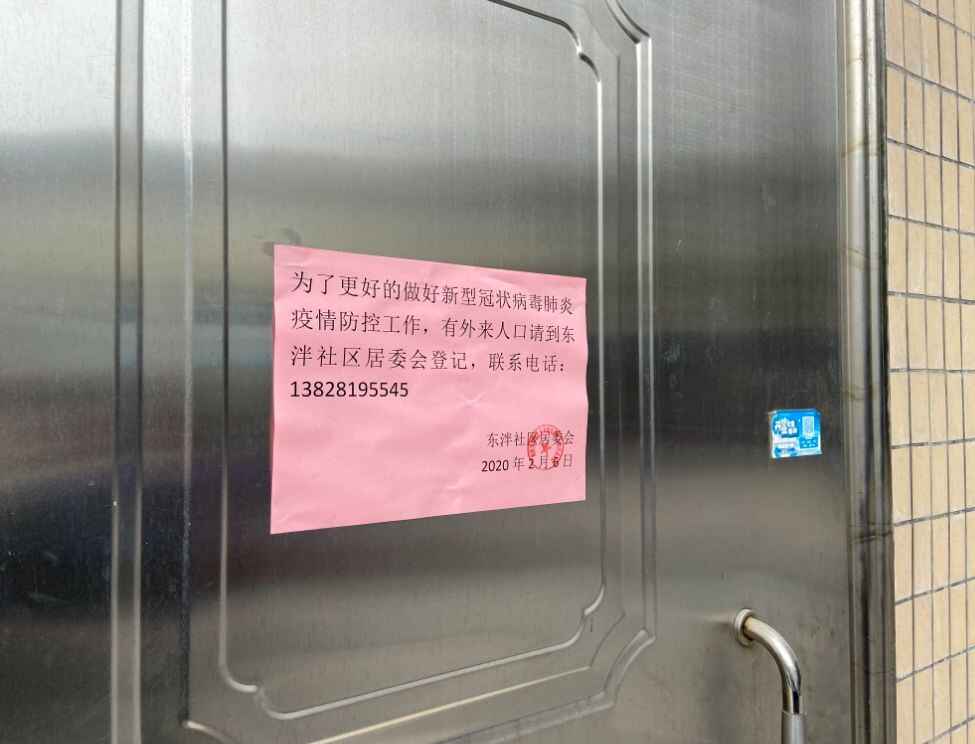 除了应用大数据系统,东升街道各社区还主动前移防疫战线,掌握排查名单,确保疫情防控不留死角。在东泮社区,每一栋出租屋的楼梯门前都会贴一张告示,上面写着“为做好新型冠状病毒疫情防控工作,有外来人员到东泮社区居委会登记”,并附有该片区网格负责人的联系方式,方便群众第一时间提供有关线索,网格管理队伍也能够第一时间开展疫情防控排查工作,实现入户排查、重点群体监控“两个全覆盖”,保障防控无死角。