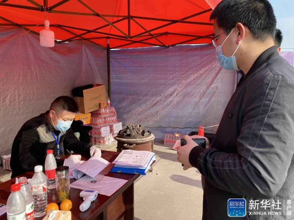 魏艺霖和队友在卡点引导过往司机如实登记信息(陈恩贵 摄)
