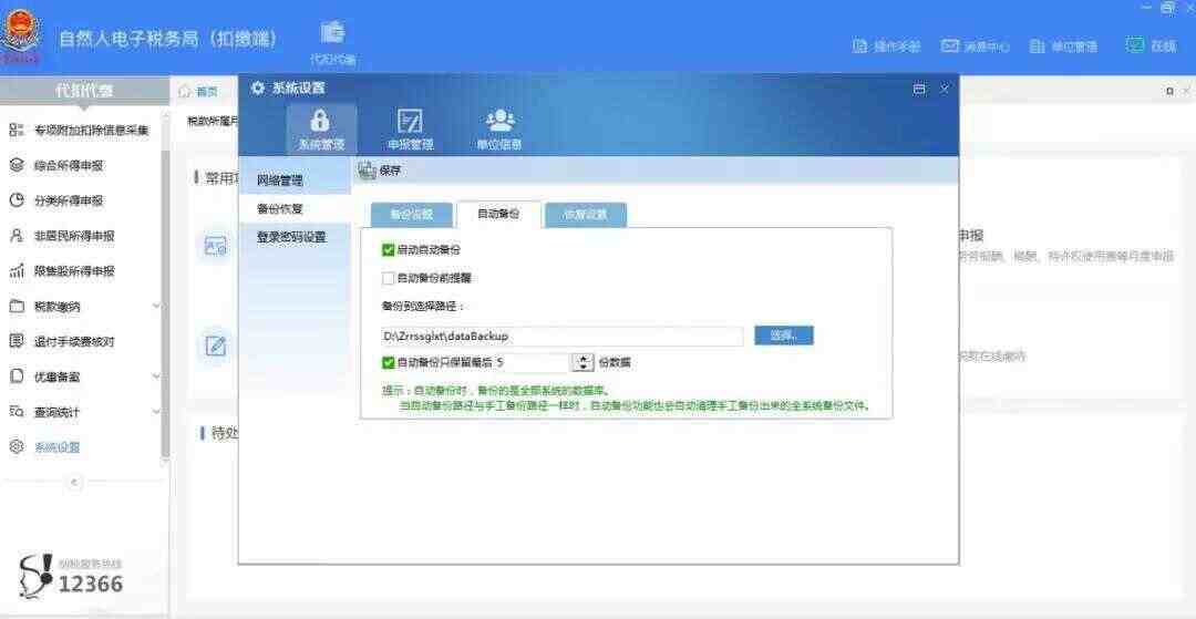找到备份文件后,将其拷贝到新电脑任一目录,再在新电脑上进入扣缴端,进入系统管理-备份恢复-恢复设置,选择好备份的文件,点击恢复即可恢复扣缴端原有数据。