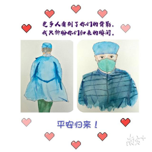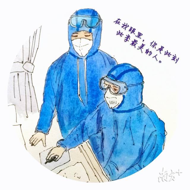 丈夫李强也是南方医院的医生,随广东医疗队驰援武汉已有20多天。这些天,李莉艳以画寄托自己的情感,创作了10余幅漫画。