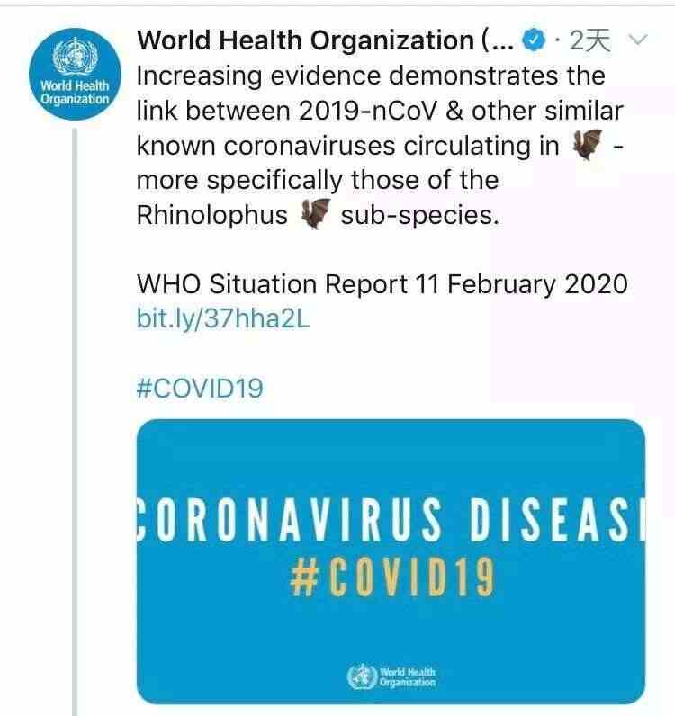 《自然》(Nature)杂志援引权威病毒学研究所的报告也指出,新型冠状病毒与来自中国云南的一种蝙蝠病毒有96%以上的基因相同,即这种病毒可能起源于蝙蝠。
