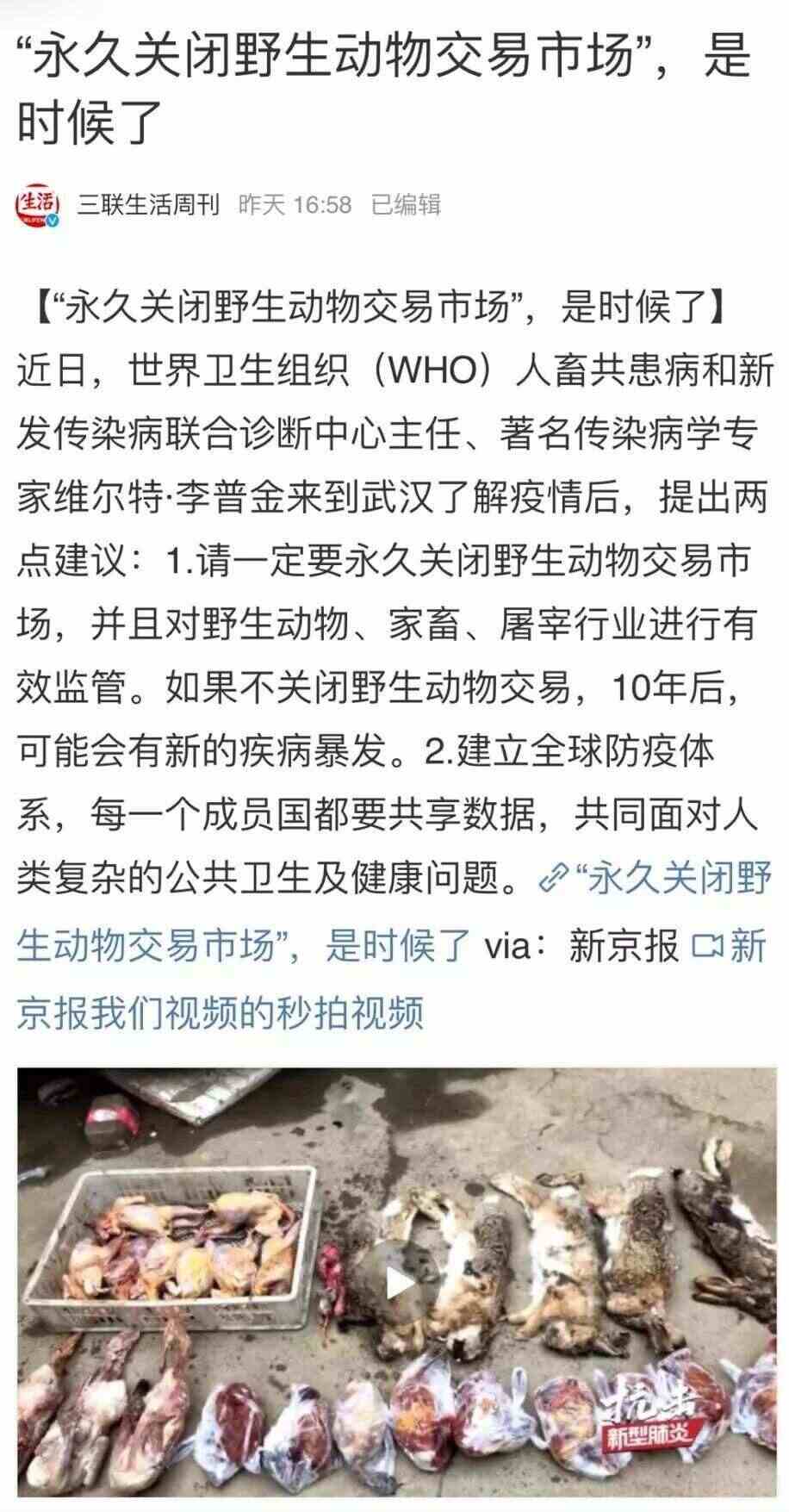 我们可以这样理解:不是“吃”野味,而是“杀”野味会感染病毒。但是,要是没有人吃野味,又何来杀野味一说呢?