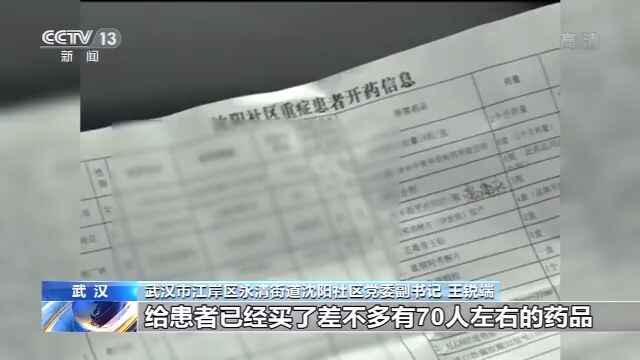 武汉市江岸区永清街道沈阳社区党委副书记 王锐端:二医院那边如果说都能开是最好的,如果二医院开不到的话,那就顺着走,一个是同济,还有一个是八医院。给患者已经买了差不多有70人左右的药品,就是光患重症这一块的,这个就是一些疑难杂症有一些药只能在医院去买的。