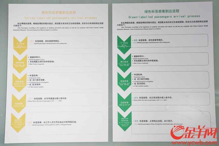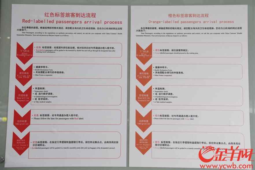 其中,红标为须离开机场的留学生(不分国籍)和中国籍旅客;橙标为有重点国家和地区14天旅居史的外国旅客;黄标为所有在白云机场中转的旅客;绿标为没有重点国家和地区14天旅居史的外国旅客。