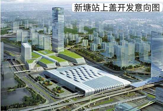 据悉,未来的新塘站不只是一个交通枢纽,而是要建成东部首个TOD(以公共交通为导向的开发)大型综合体,采用站城融合的最新理念,站场“加盖”建设上盖城市综合体,形成广州东部枢纽门户。招标公告中透露,按照城市规划设想,铁路站场东侧拟进行上盖综合开发。根据上位城市规划要求,整个一体化用地内综合开发总量不超过40万平方米。