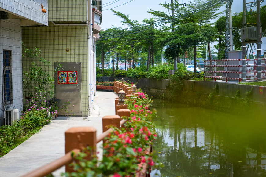 为此,鸦岗村着手开展相关改造工程,融入岭南特色和水乡文化元素,打造出一河一景、一街一观的水乡风景线,为周边的居民提供休闲、娱乐等于一体的活动场所。河涌两岸的护栏上,摆放着一盆盆簕杜鹃,阳光下,鲜花盛开、河水清澈、道路干净,令人心旷神怡。