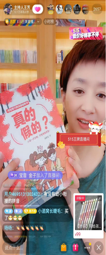 此次王芳老师的直播选品十分用心,如《俏鼠记者》《淘气小子马克斯》《杨鹏少年科幻小说 典藏版》等作品,多是经典热销图书或知名获奖作品。在直播中,王芳老师也详细介绍了每一本书的适读年龄、故事大纲、是否会标注拼音等信息,同时也会念出弹幕里用户对书籍的评价为大家提供参考。既有王芳老师在线讲解优质好书,又有旋律欢快的背景音乐,让不少粉丝直呼“每天都想买买买”!