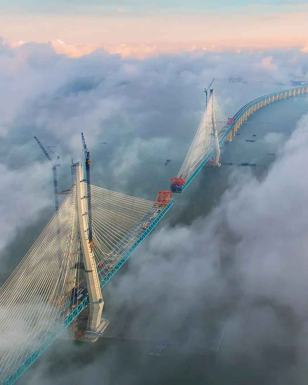 为实现大桥超千米的跨度,建设者们为其“量身定制”了强度达500兆帕的高强度钢和2000兆帕的斜拉索,这两个材料的强度均为世界之最。