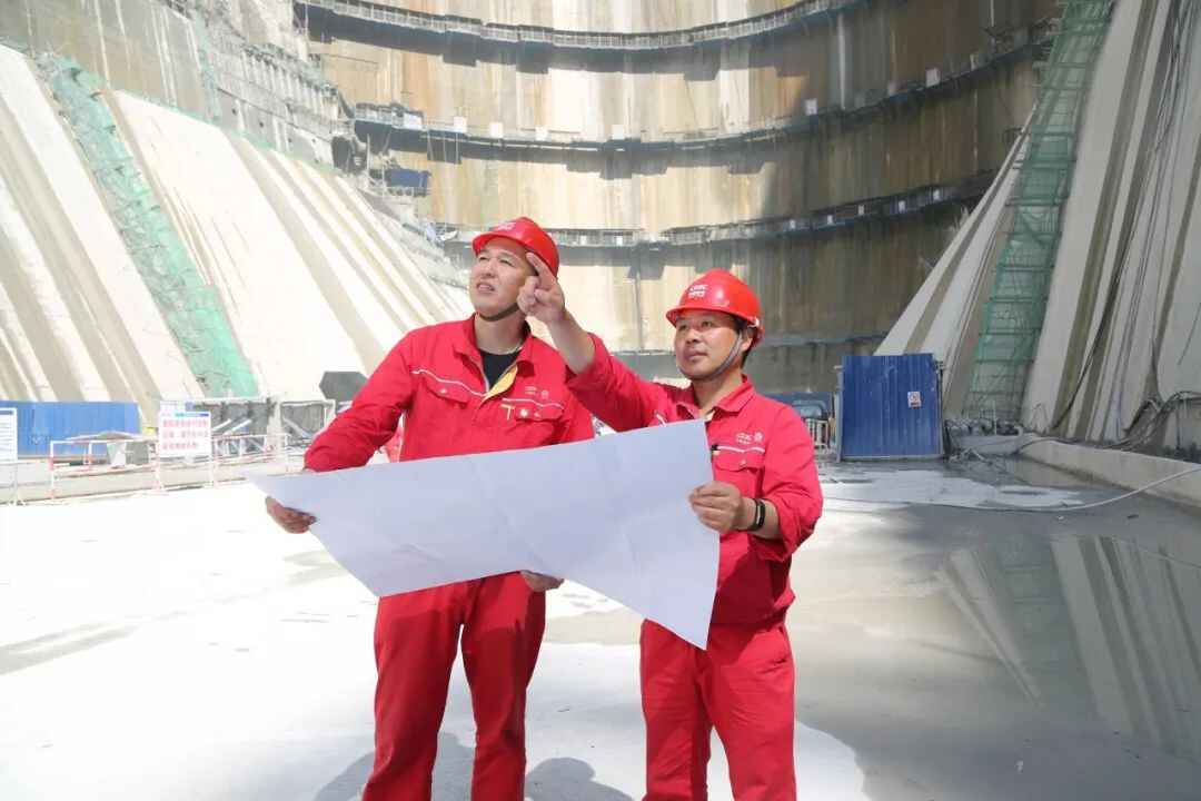 20年前,付强(右)加入葛洲坝集团,先后参与三峡、向家坝等水电工程。他就像一位父亲,将混凝土这个“孩子”照料得无微不至。每逢大雨,他总是守在现场,督促落实防雨措施,及时组织排水、过水仓面处理。40多摄氏度的高温下,他来回穿梭于大坝浇筑仓号,组织着资源开仓和接转。乌东德工程进入混凝土浇筑高峰后,他结合混凝土施工特点,精心组织,严格管理,成功应对乌东德水电站混凝土浇筑高峰,工程建设整体质量获国家质量监督总站专家一致好评。