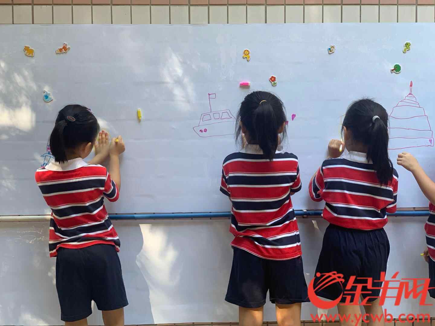 芳村花园小区配套永厚幼儿园中,孩子们正在涂鸦