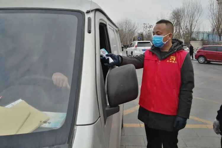 孙玉龙给驾驶员检测体温。梅宁生 摄一副手套、一只口罩、一把体温枪、两份登记表,装配好行装,孙玉龙每天说过最多的一句话就是“您从哪里来,到哪里去,有没有发热咳嗽”,询问外来人员始发地、乘坐交通工具、行程时间,对疫情重点地区返银和来银人员逐一排查,在小区检测点每经过一辆车、一个人,他都上前认真询问查验、做好登记,确保早发现、早诊断、早隔离、早治疗。孙玉龙和社区防疫卡点值守的其他志愿者坚持24小时轮班守岗,无缝对接。孙玉龙每隔一天就有一个夜班,初春的深夜,寒气逼人,但他坚定如钢铁卫士,不叫一声苦,不喊一声累。仅2月份,他在社区疫情防控一线志愿服务时长70个小时,检查车辆800余辆,为社区疫情防控提供了第一手资料。每天下班后,他顾不得休息,便奔赴社区检测点。当得知吉泰润园小区有确诊病例后,他再次请战:“我是党员,我先上。我会当好居家隔离人员的‘服务员’。哪怕我的力量微弱,也要把温暖传递给社区居民,隔离病毒不隔离爱。”当时,吉泰润园小区内有28户居家隔离住户,该小区被列为疫情防控全封闭式小区,非隔离住户限1人出门采购必要的生活物资。当居家隔离居民生活物资短缺时,孙玉龙充当“快递员”;当居家隔离居民生活垃圾需要清运时,他充当起“清运员”。一趟趟地背、一层层地爬楼,把隔离住户订购的物品运送到家门口后还会对物品进行消毒。在参与社区疫情防控志愿服务期间,孙玉龙先后为隔离住户上门送物资百余件。(梅宁生 吕金蓉)