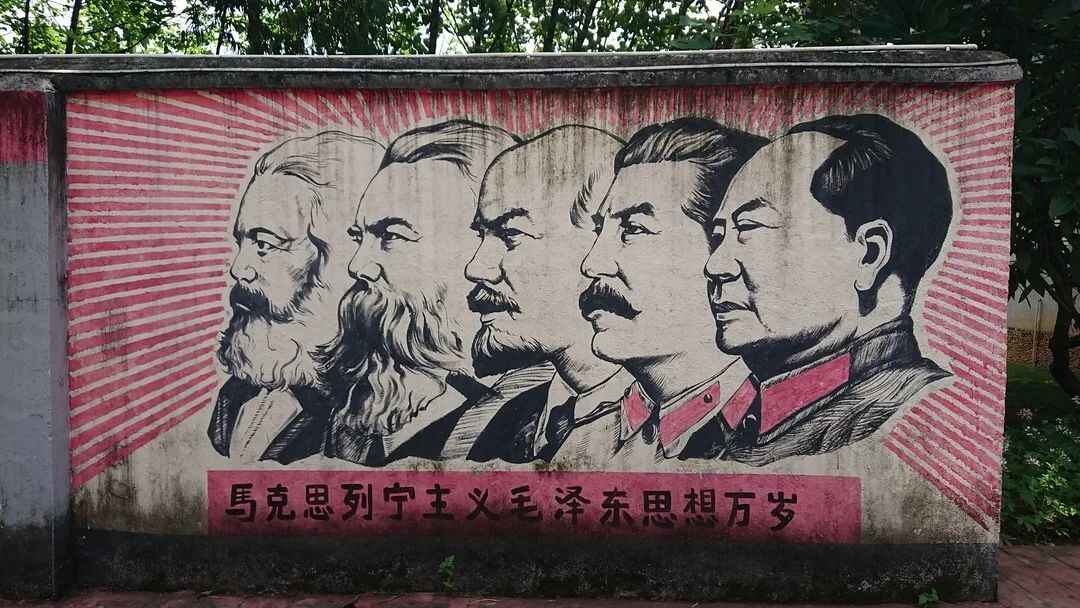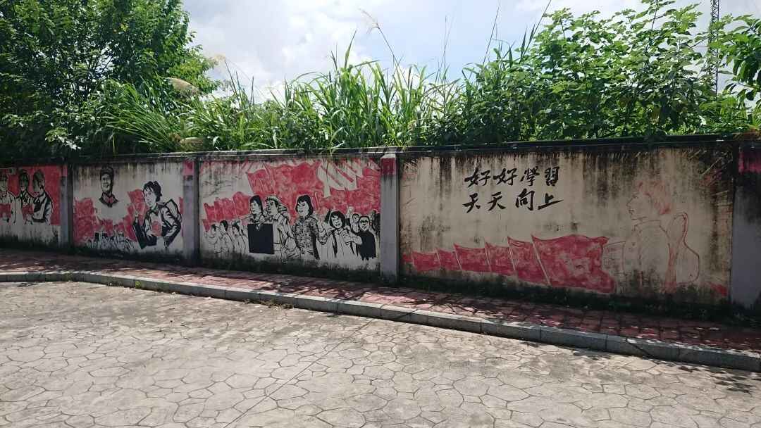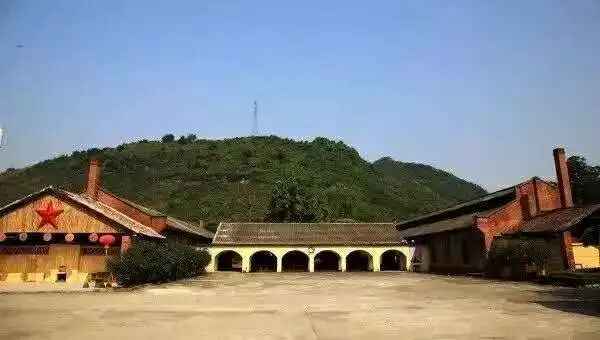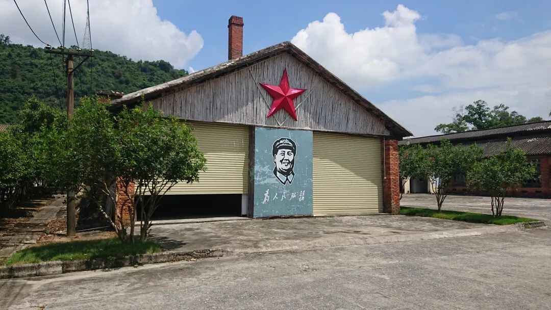 进入厂区,斜顶砖瓦屋、红色革命壁画……