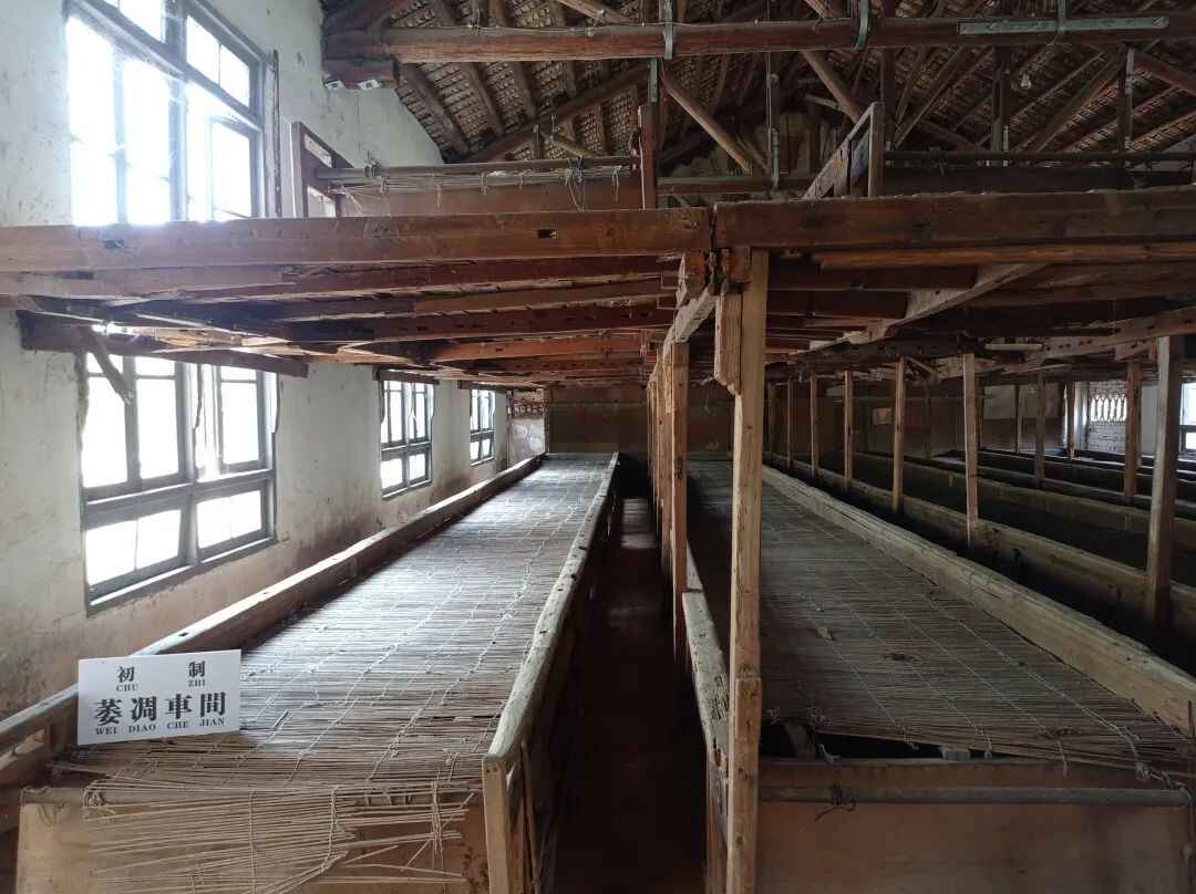 走过半个多世纪的茶叶萎凋车间与筛选车间,铺着竹席、毫无虫蛀痕迹,凉爽又通风,不得不感慨一番劳动人民的智慧……