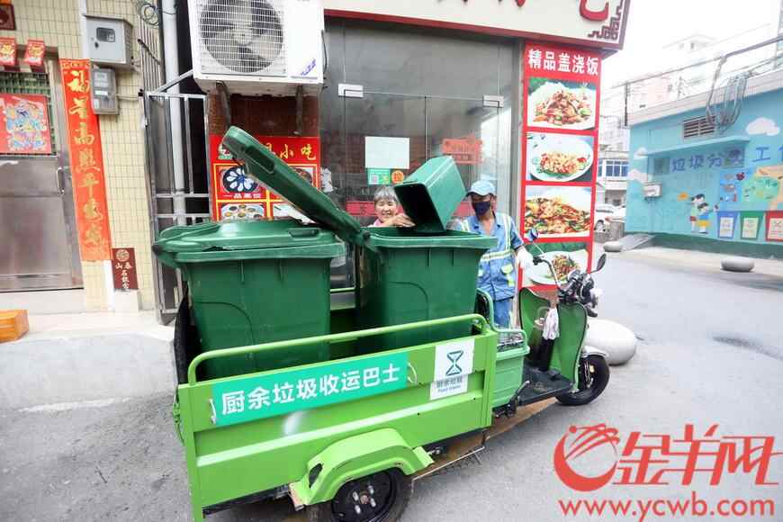 广州市白云区均禾街道,厨余垃圾收运巴士穿梭城中村收运小餐饮企业厨余垃圾 梁怿韬 摄