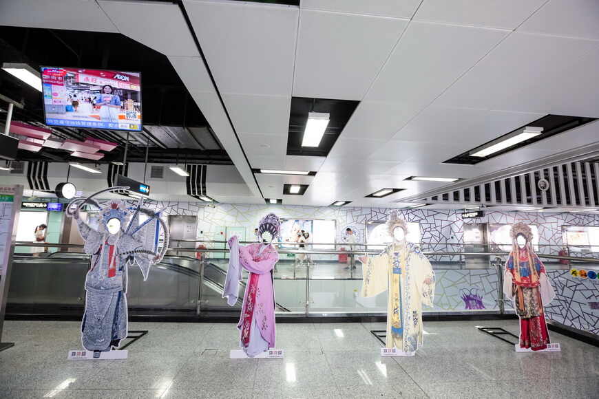 非遗主题展打包“装”进了地铁站,整体风格以“窗”为媒,营造出透过“岭南之窗”凝视或聆听的效果,乘客可近距离感受非遗文化。主题展分“潮墟”非遗创意市集、岭南非遗吉祥物、广州传统工艺美术及粤剧四大主题进行展示,与媒体港潮墟、广州塔岭南文化主题展遥相呼应。