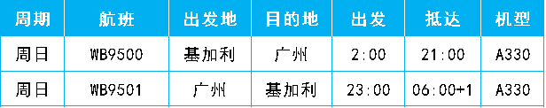 随着疫情缓解,卢旺达航空计划于8月16日起恢复基加利往返广州的定期客运航班,每周日运营一班,由空客330执飞。该航线为中国与卢旺达两国之间首次不经停的定期直飞客运航班。
