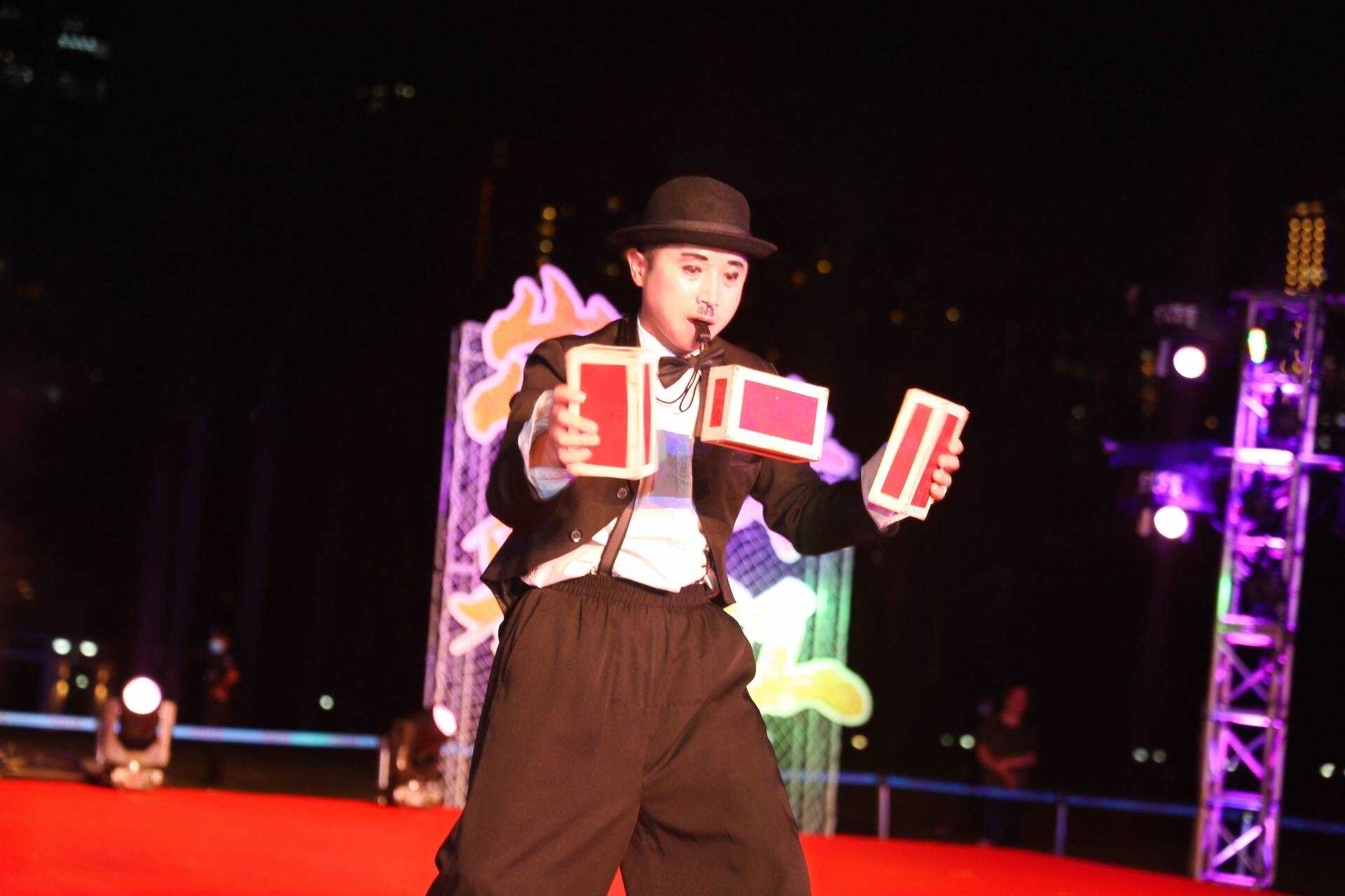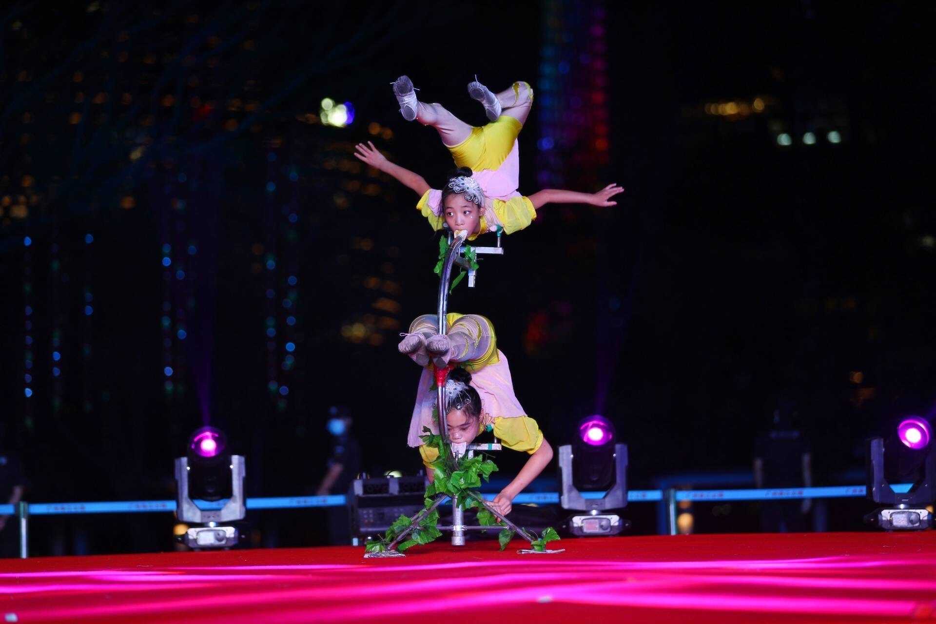 《国潮醒狮》《爵士乐》《荧光舞》动感十足。不同风格的乐队、高技术含量的杂技、电光舞等充满青春气息的节目轮番上演,弘扬积极向上、向往美好生活的正能量。跳动的音符,炫彩的灯效,伴随着市民游客热情的喝彩,活力动感和青春色彩在荧光棒和小国旗中流动,为市民奉上一道家门口的“文化大餐”。