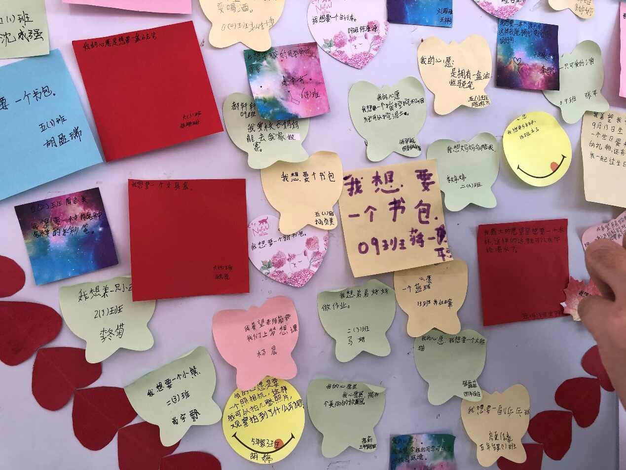 学校墙上贴着孩子们的微心愿:“我想要一个书包”“想要一支水彩笔”“想要一个文具盒”“希望爸爸永远不喝酒”……在纳雍这个国家级贫困县,孩子们的愿望如此微小。