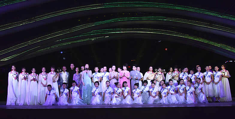 晚会开场,陈玲玉手抱琵琶,携三位徒弟萧诗琳、莫倩雯、王文及广东音乐曲艺团一众优秀青年演(奏)员,与来自广州市朝天路小学、署前路小学、省实、七中,东莞市道滘镇青少年粤剧曲艺培训中心的学生共46位演员惊艳亮相,共同合唱陈玲玉的代表作《海缘》。