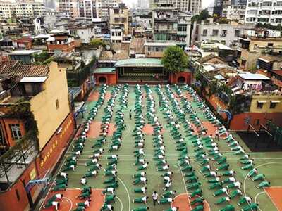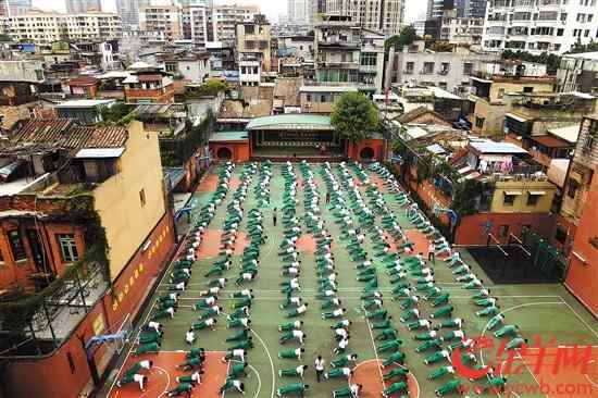 每天上午大课间,海珠区同福西路的广州市第三十三中学初三学生都会围着校园跑步。该校是典型的老城区“微型”学校,面积只有一个足球场大小(11亩),操场一圈只有一百米,为了让学生跑起来,学校把校内最大周长铺成跑道,一圈扩大到400米左右,每个学生每天至少要围着校园跑1200米以上。