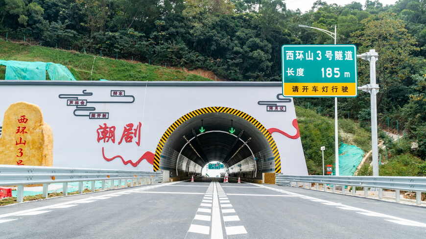 地处潮汕地区,潮汕环线高速公路自然要讲好“胶己人”的故事。在沿线隧道洞门上绘制一幅幅“潮汕画卷”,因地制宜地展现“潮”文化。