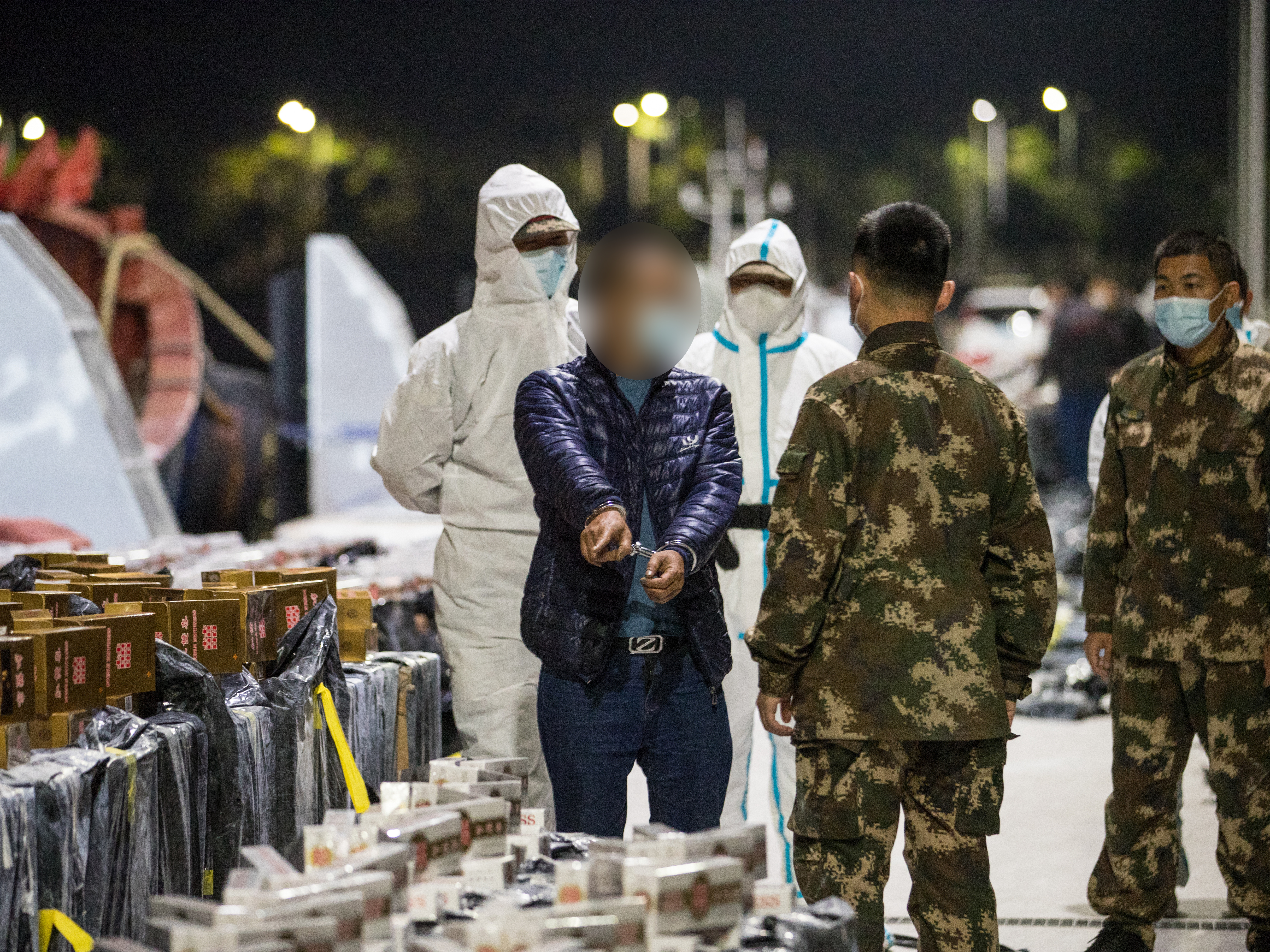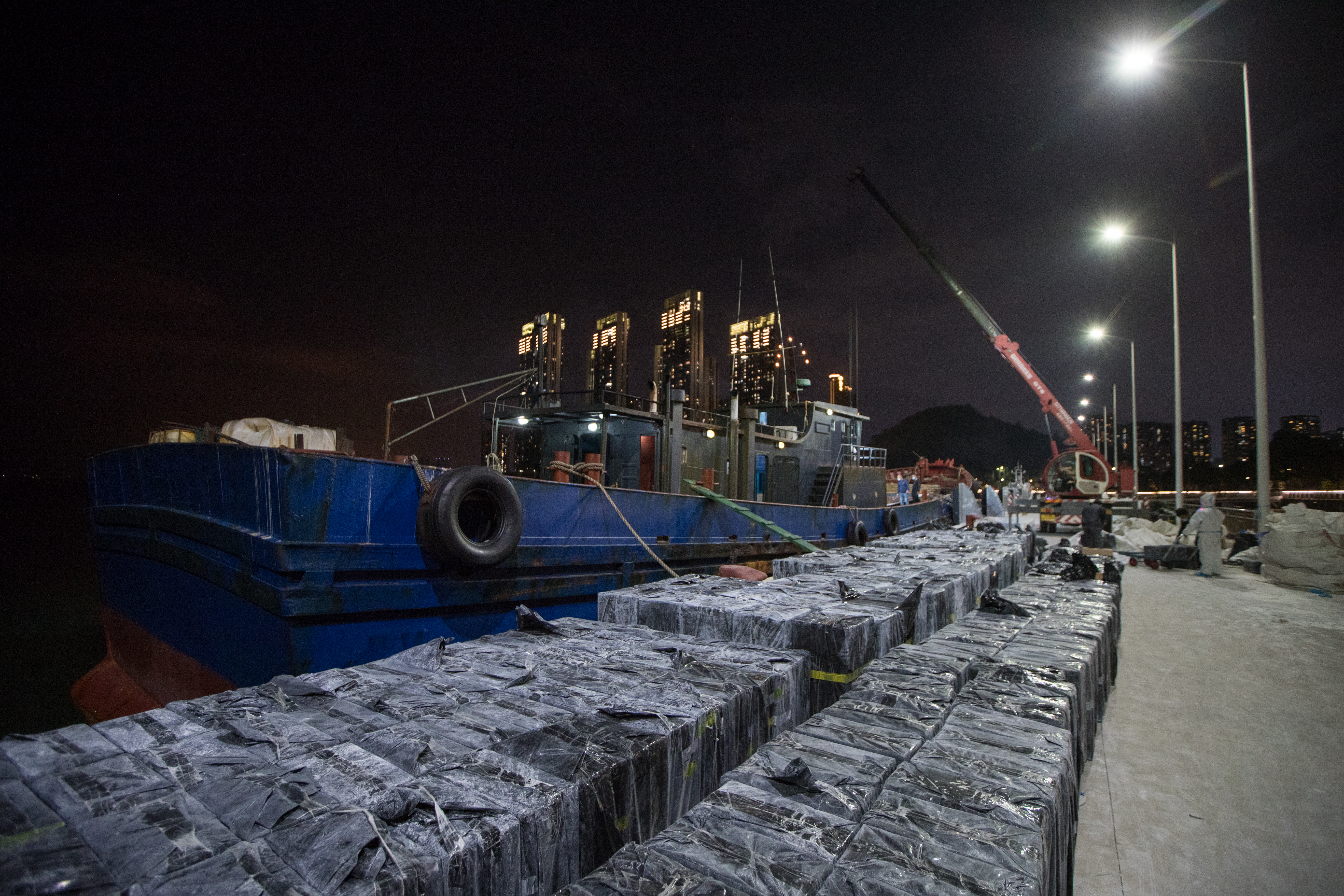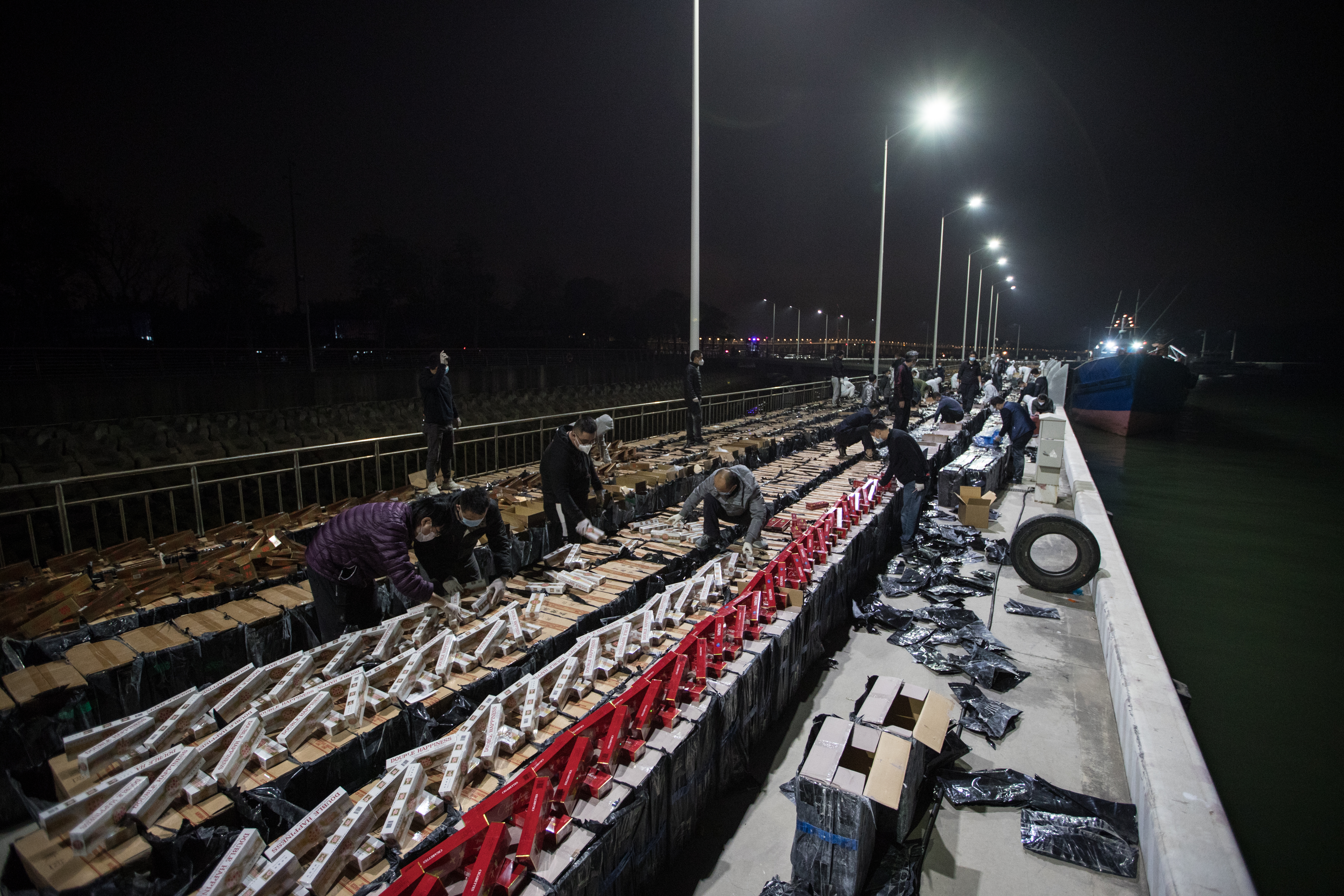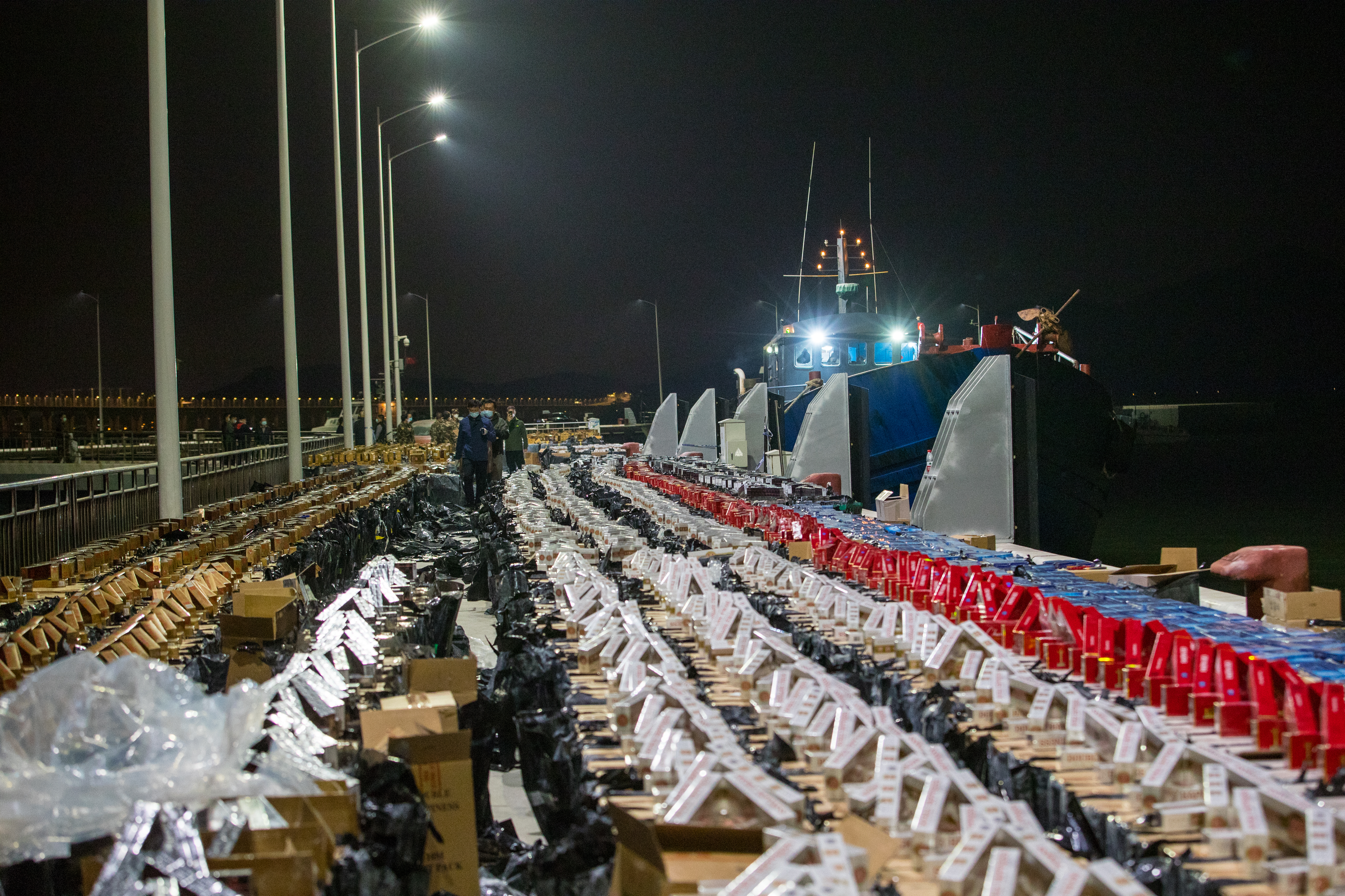卸载的涉案香烟布满码头
